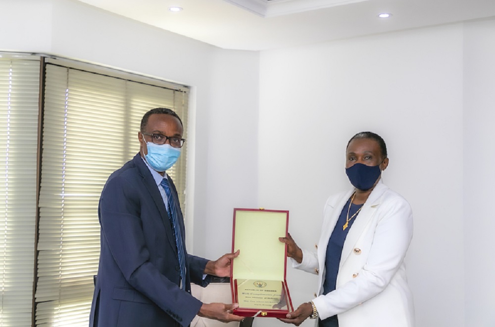 The South Sudan Minister of Defence and Veterans Affairs, Hon. Angelina Jany Teny was today received at RDF Headquarters by Hon Minister of Defence, Maj Gen Albert Murasira together with the Chief of Defence Staff, Gen J Bosco Kazura.